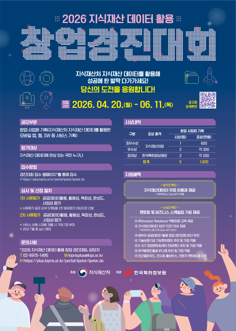 - [첨부1] 2026 지식재산 데이터 활용 창업 경진대회 모집 공고.pdf (1.9M) 2회 다운로드