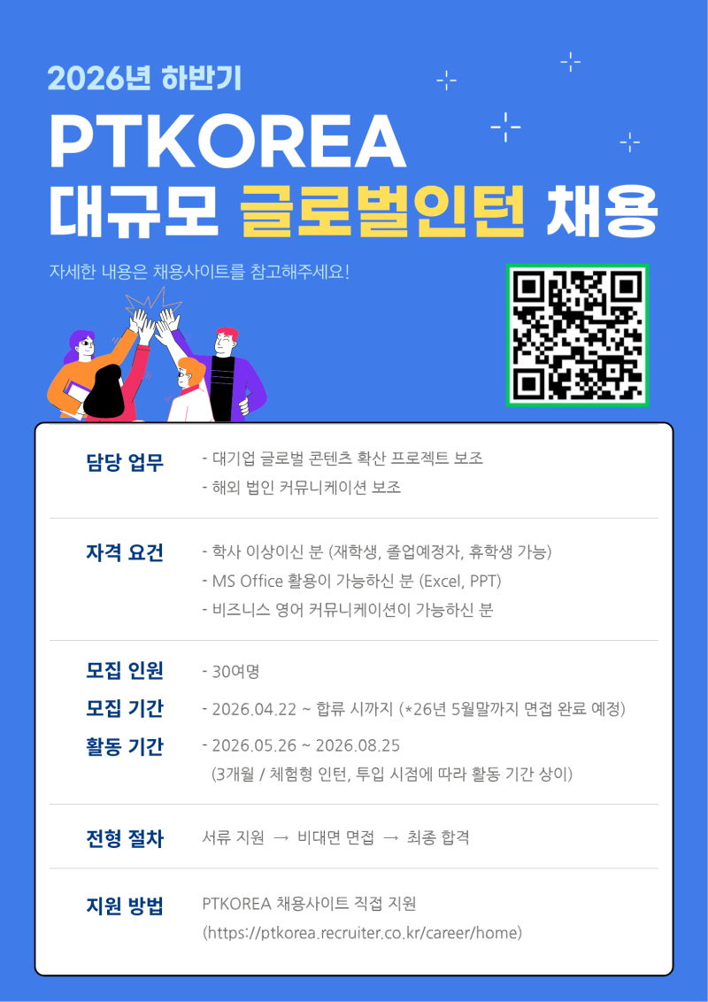 [PTKOREA] 2026 PTKOREA 대규모 글로벌 AE 인턴 채용 공고