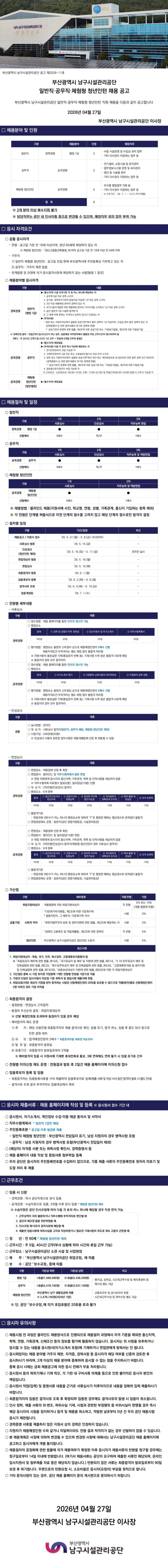 - 2026년 부산광역시 남구시설관리공단 일반직·공무직·체험형 청년인턴 채용 공고.hwp (53.0K) 1회 다운로드