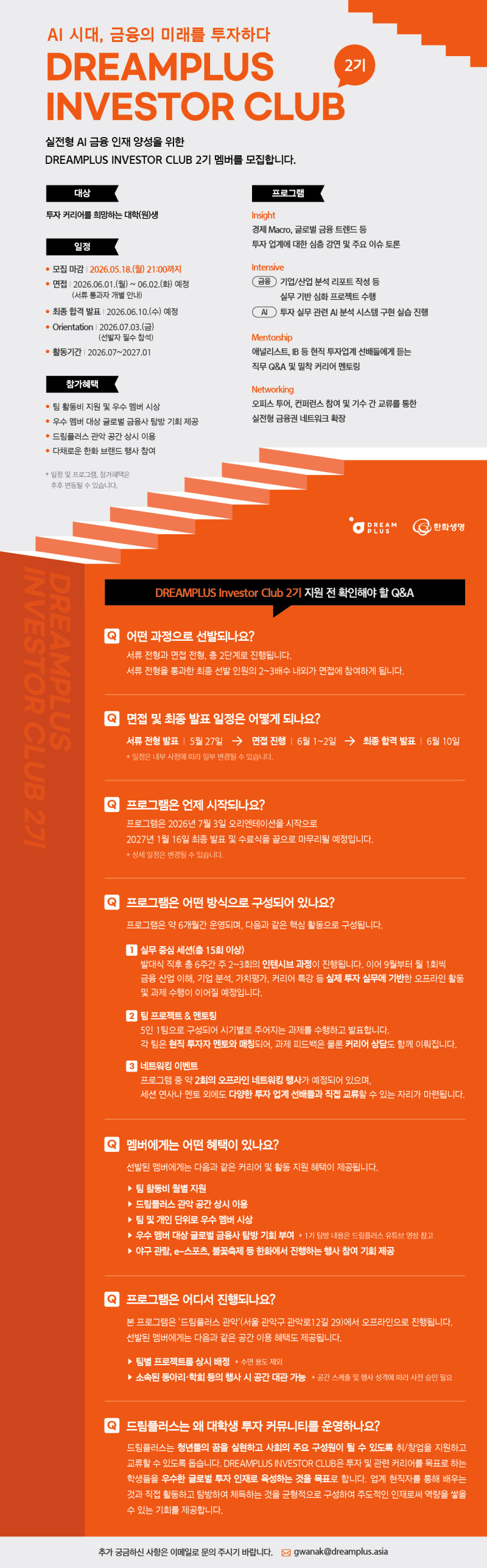 한화생명 드림플러스 인베스터 클럽 2기 모집 (~5/18)