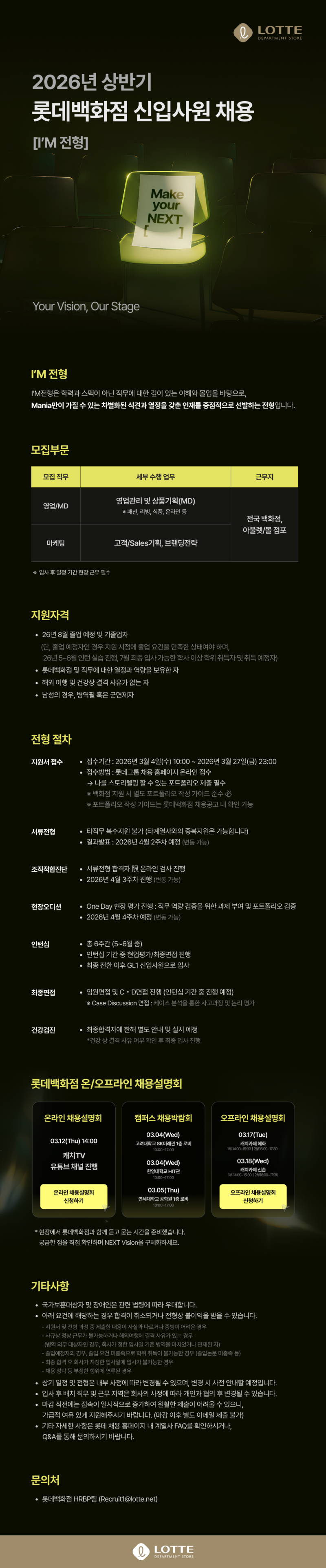 - 롯데백화점 채용 안내 홈페이지 : http://lottedepartment-makeyournext.com/