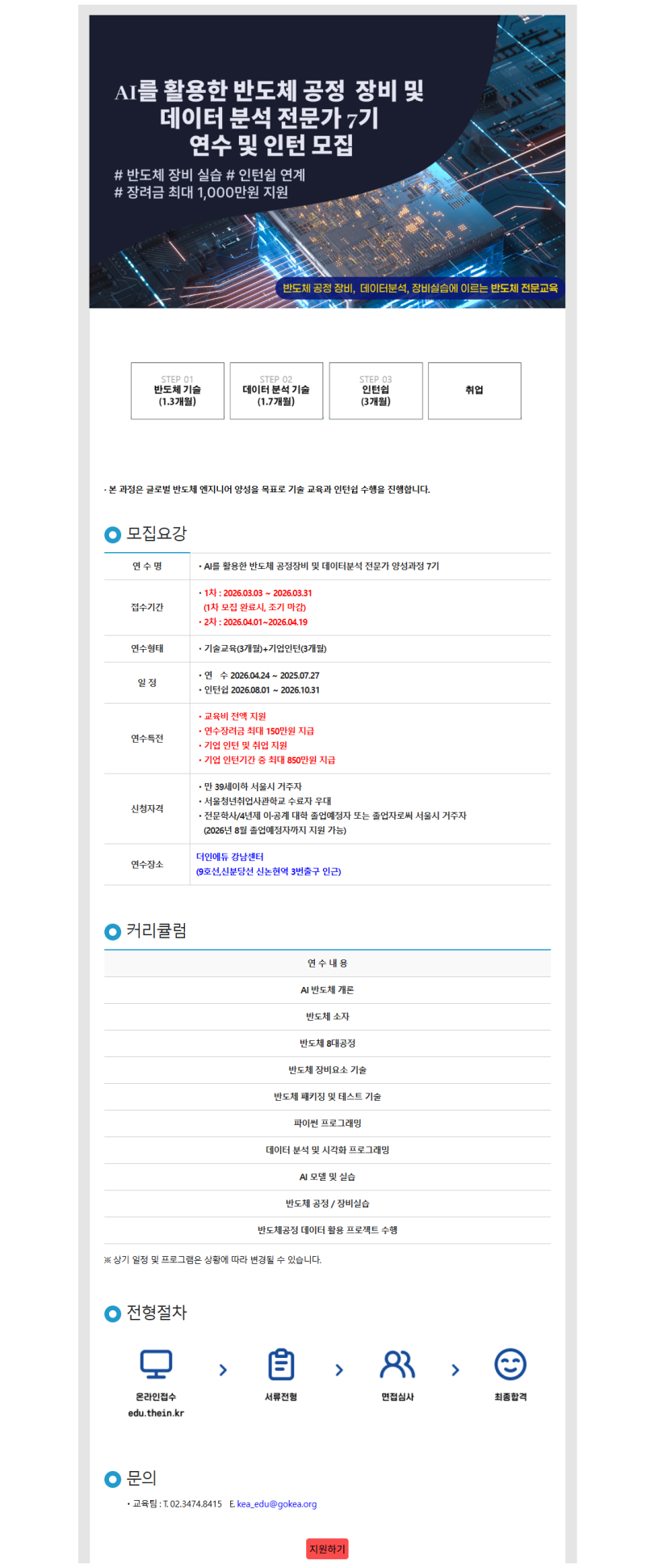 어려운 시기에 정부에서 취업을 도모하고 반도체산업 인력을 양성하는 청년일자리 육성사업입니다.