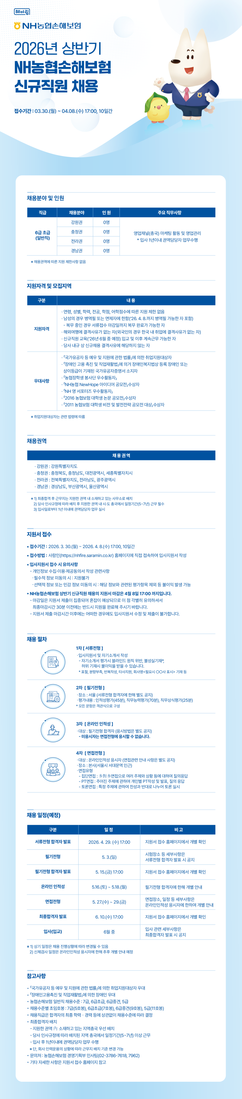 [NH농협손해보험] 2026년 상반기 NH농협손해보험 신규직원 채용 (~04/08(수) 17:00까지)