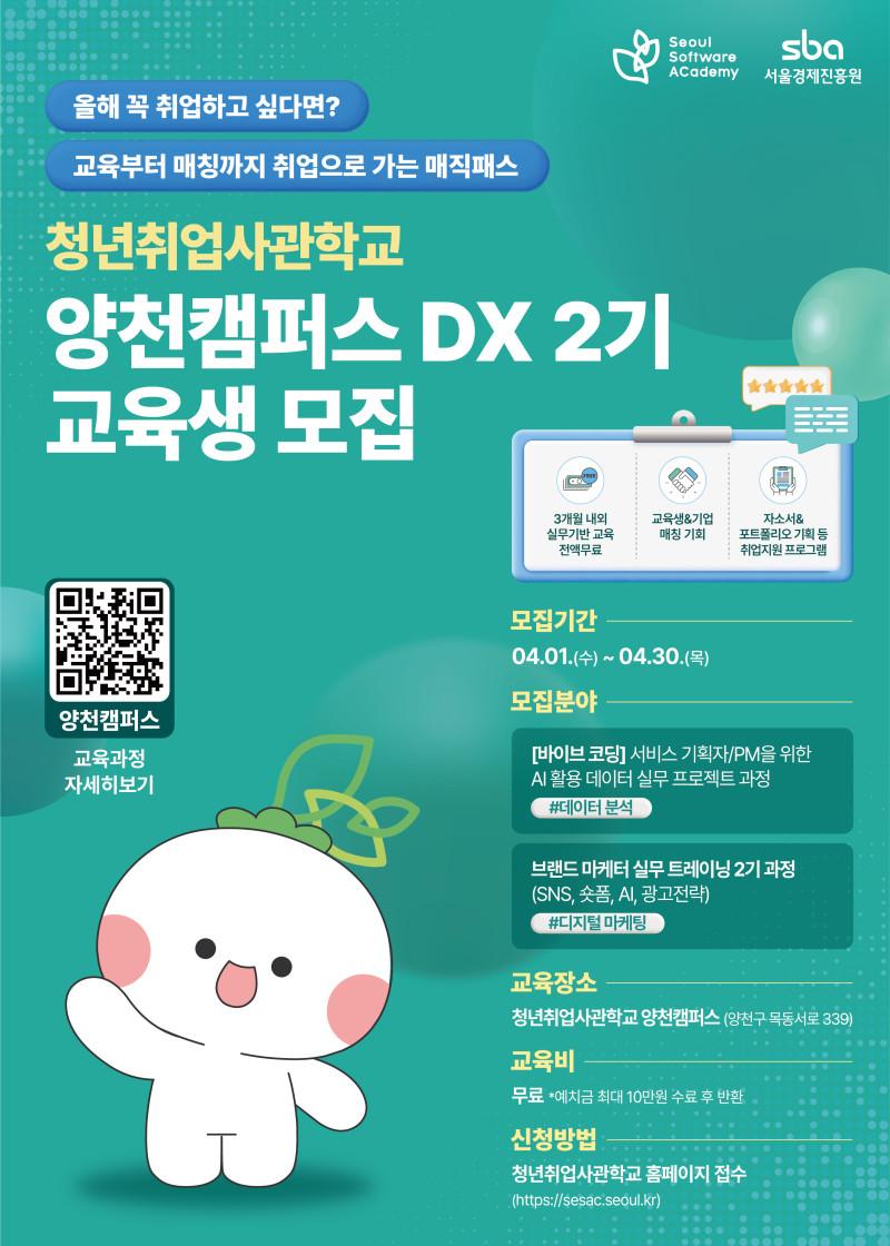 [청년취업사관학교 양천캠퍼스 DX 2기 교육생 모집] (~4/30)