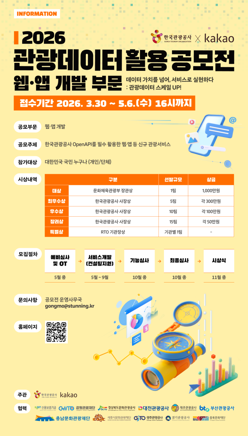 [공모전홍보] 한국관광공사 | 2026 관광데이터 활용 공모전 (웹·앱 개발) (~5/6)