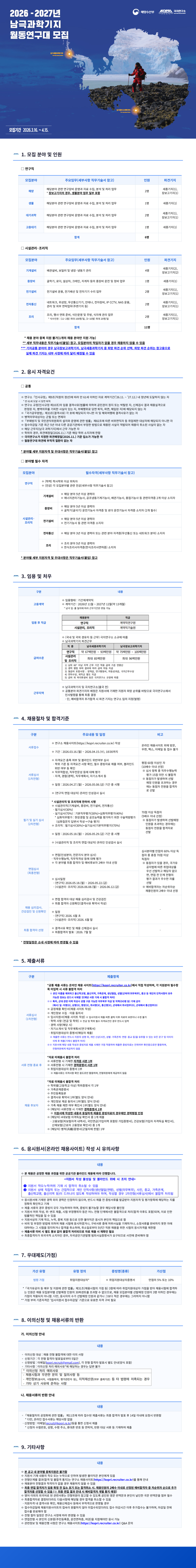 2026년 남극과학기지 월동연구대 모집 (~4/15)